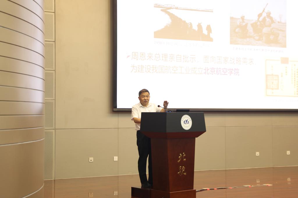 房建成作了题为《空天报国、敢为人先的北航故事》的讲话。他回顾了北航建校66年以来为我国航空航天事业、国防事业与经济社会发展所做出诸多历史性贡献。从建校初期北航培养新中国第一代红色工程师,到改革开放不忘初心培养航空航天的优秀领军人才,到新世纪扎根祖国,培养国家急需的一流创新人才,到新时代立德树人培养社会主义建设者和接班人。他勉励全体教职工在未来的学术研究和创新探索道路上坚定信念、努力拼搏,为建设航空强国和航天强国,培养合格建设者和可靠接班人,永葆红色基因,传承空天报国、敢为人先的北航精神,加快建设扎根中国大地的世界一流大学。