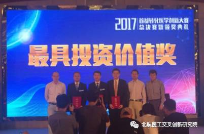 备受瞩目的首届首都转化医学创新大赛总决赛暨颁奖典礼于2017年9月20日下午在海淀区京仪大酒店举行,来自首都多家知名医院的27个优秀医学项目迎来了巅峰对决。由北京积水潭医院王军强主任和北京伊人99生物与医学工程高精尖中心王豫副教授团队共同申报的项目“基于体感交互与生物力学约束的智能化下肢长骨骨折复位系统”以总评分第一的成绩获得一等奖、最具投资价值奖。
