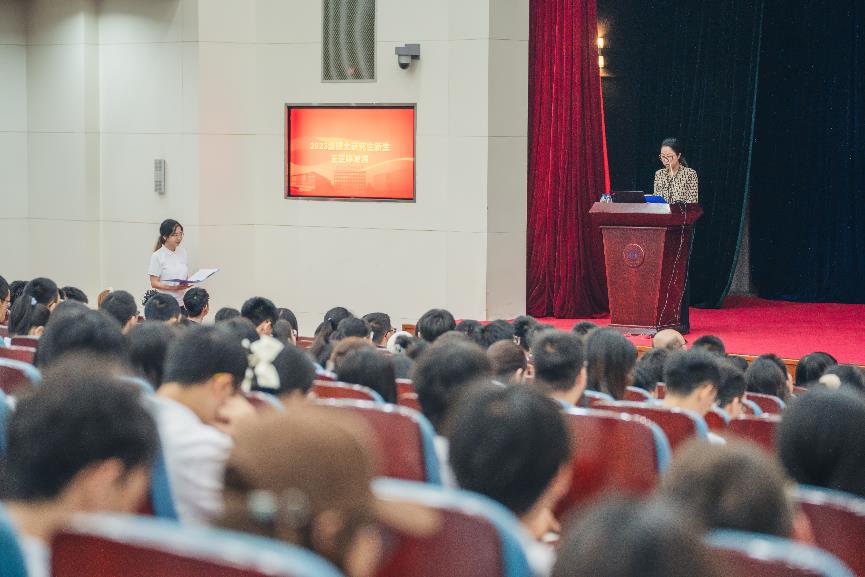 2023级硕士研究生新生代表王芷婷回顾了自己本科阶段在医工交叉学科群的学习成长与收获进步,畅谈本科期间的学习体会,号召同学们肩负起北航人的使命担当,脚踏实地,勇于创新。
