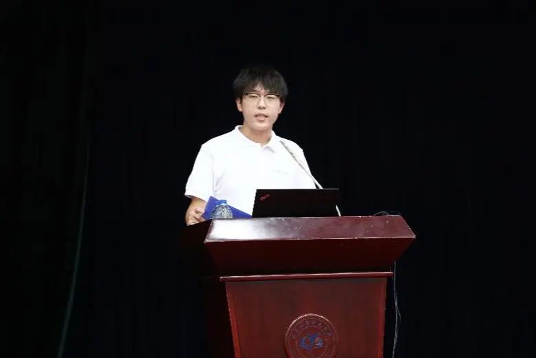 2017级博士研究生在校生代表靳凯翔代表学院全体在校生表达了对新生们的欢迎与祝贺,讲述了自己学习科研的收获与体会,扎实基础、耐心坚持、求理寻真、见贤思齐。