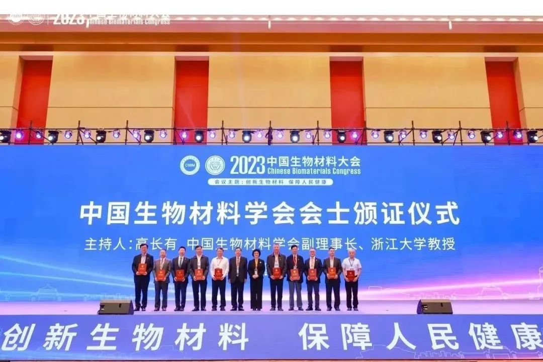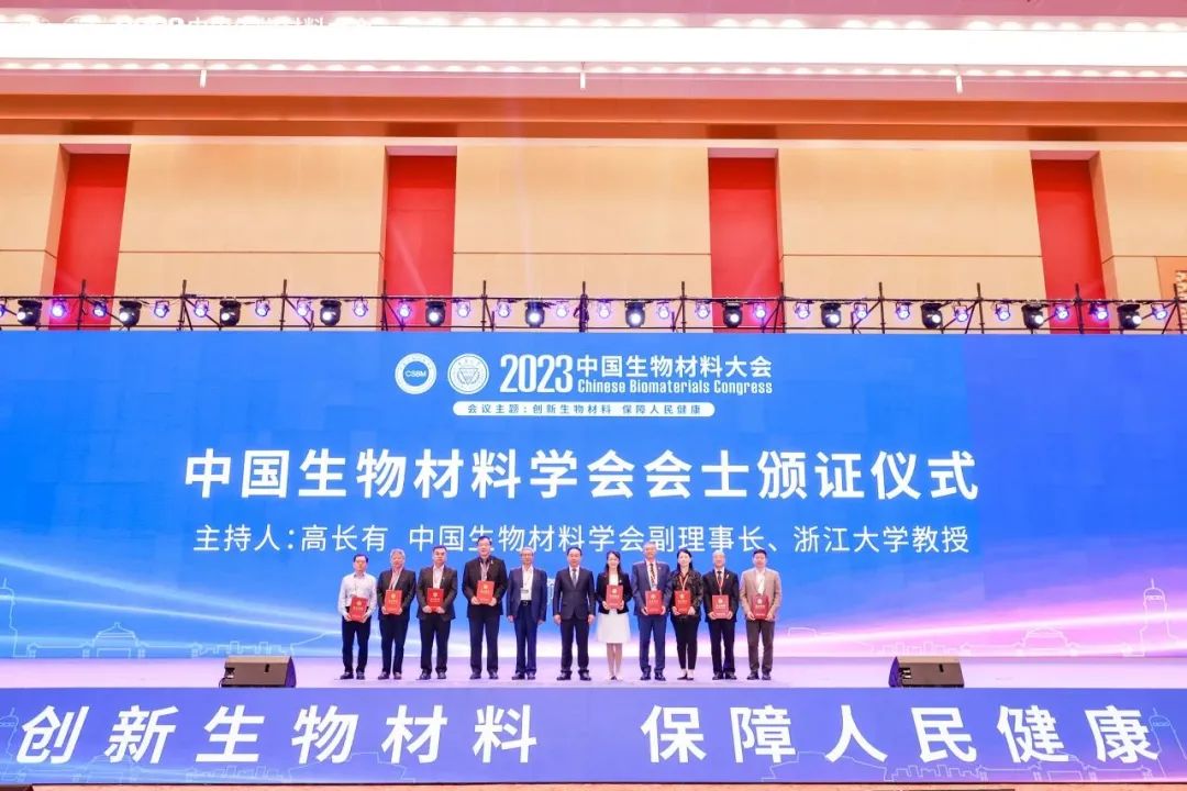 中国生物材料学会首届会士颁证仪式在大会开幕式上隆重举行。张兴栋院士、周廉院士、王迎军院士、付小兵院士、刘昌胜院士、赵宇亮院士、陈学思院士、唐本忠院士、顾宁院士、马光辉院士、朱美芳院士、施剑林院士、樊春海院士等46位首届会士被正式授予学会终身最高荣誉称号。北京伊人99医学科学与工程学院、生物与医学工程学院、医工交叉创新研究院院长樊瑜波教授获此殊荣。
